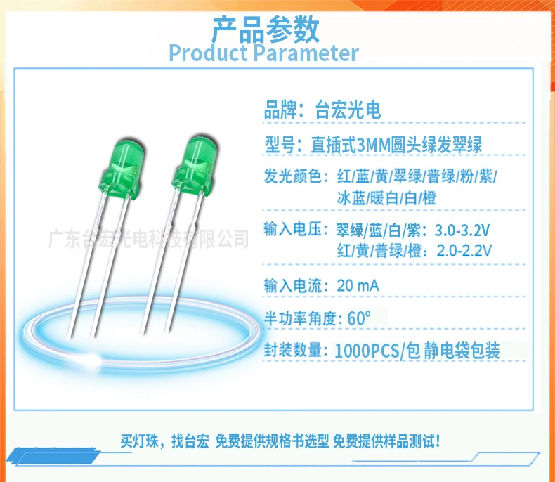 led灯珠3mm翠绿光直插led灯珠,圆头透明绿光发光二极管 灯珠波长:515-525NM 电压:2.8-3.4伏 电流:20毫安。