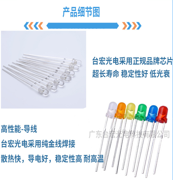 台宏白发黄led灯珠,F3白发黄光灯珠,圆头透明白发黄发光二极管3mm