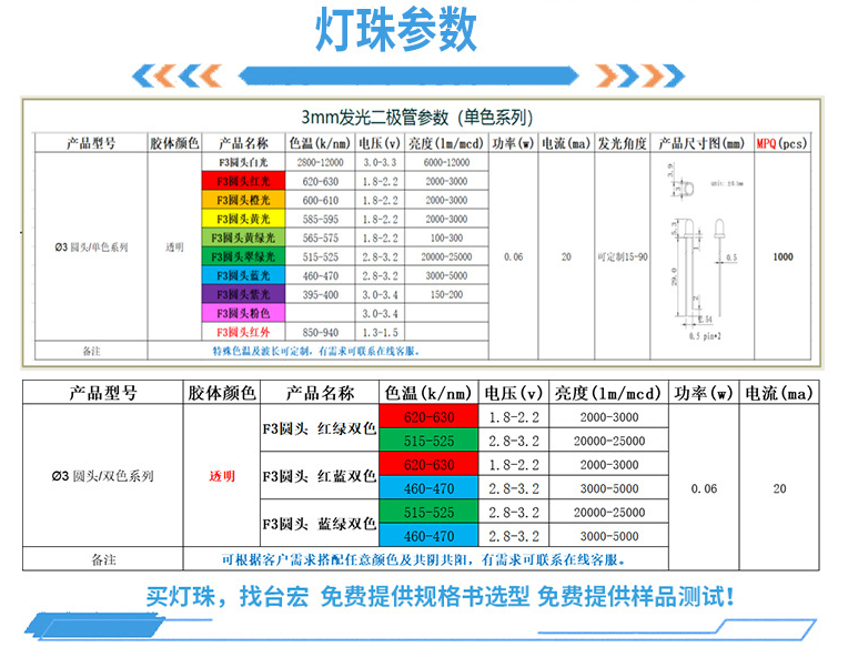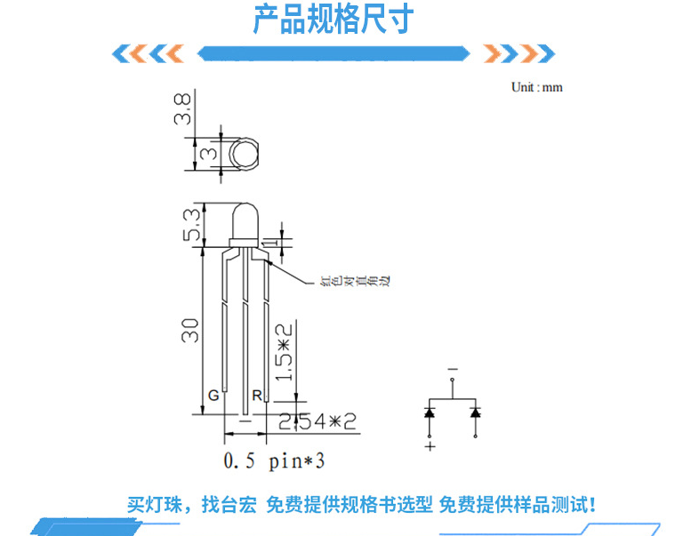 红翠绿双色led灯珠, led直插灯珠f3红翠绿双色, f3圆头三只脚红翠绿双色led灯珠, 红翠绿双色发光二极管, 产品参数: