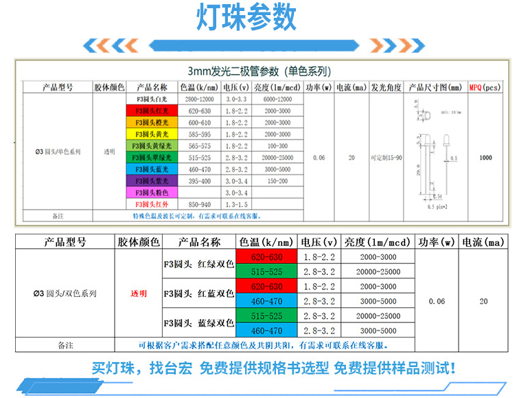 插件灯f3led灯珠3mm透明黄翠绿双色,led指示灯共阴共阳直插发光二极管定制