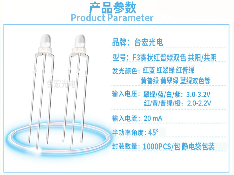 led直插灯珠f3红普绿双色,插件灯f3雾状3mm红普绿双色指示灯共阴/共阳