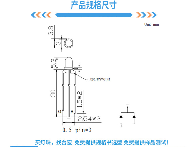 红普绿led灯珠3mm, 3mm红普绿led灯珠, led直插灯珠f3红普绿双色, F3MM发光二极管红普绿, 阴阳发光二极管红普绿3MM。