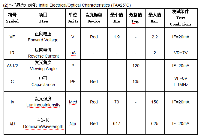 1206红色LED规格书
