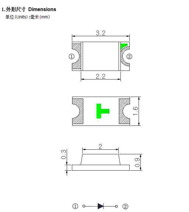 • 外形尺寸:3.2mm×1.6mm×1.1mm