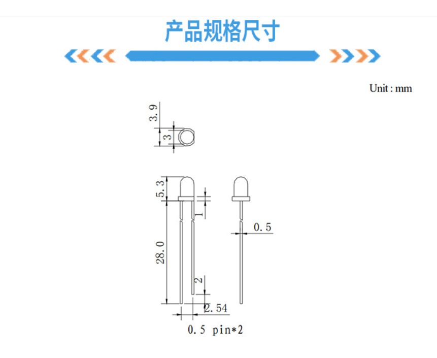 这些尺寸参数确保了3mm发光二极管在各种小型电子设备中的广泛应用。