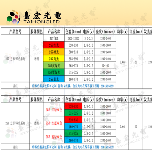 方形灯珠 257 是一种采用插件式封装小灯珠、低功耗、高亮度 LED 灯珠,广泛应用于各种电子设备和指示应用中。以下是该产品的详细信息和特点: