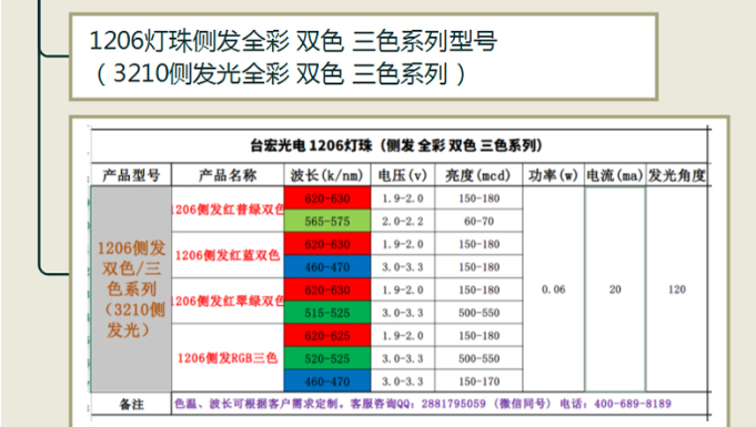 1206灯珠侧发系列型号(台宏光电 1206灯珠(侧发 全彩 双色 三色系列)