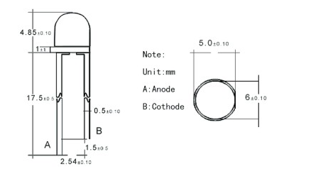 5mm草帽led灯珠高度尺寸如下: