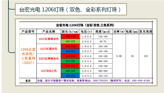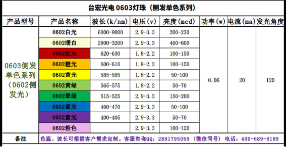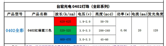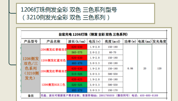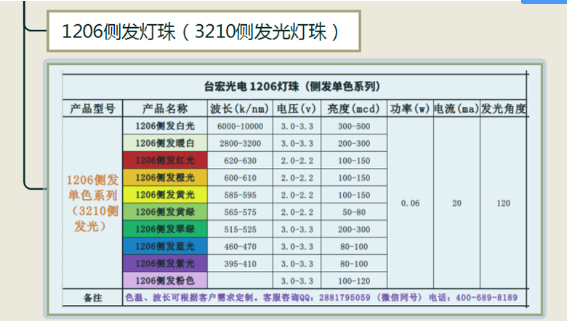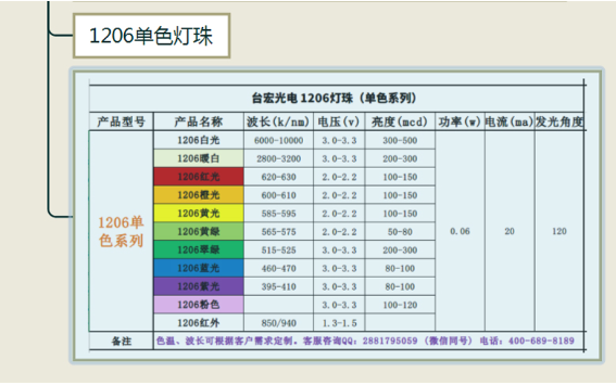 1206灯珠系列系列参数资料来自台宏光电官网LED灯珠图片