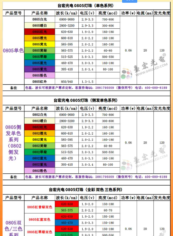 后面,我们再陆续分享中功率,大功率,直插等led灯珠规格型号表系列篇。