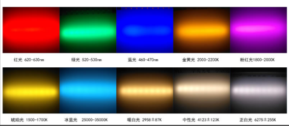 主要是指白光系列,单位:K, 暖白光:2800-3200K ,中性白光:4000-4500K, 正白光:6000-6500K, 暖白光:7000-10000K以上。