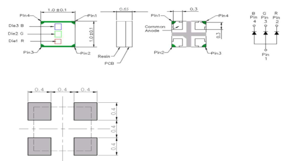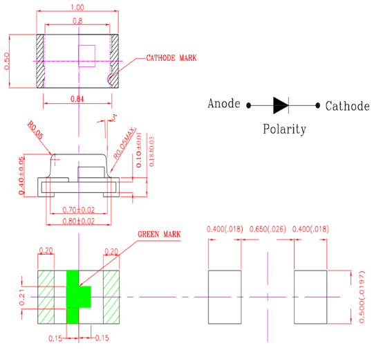 二) 0402彩色灯珠尺寸图:(0402彩色灯珠)