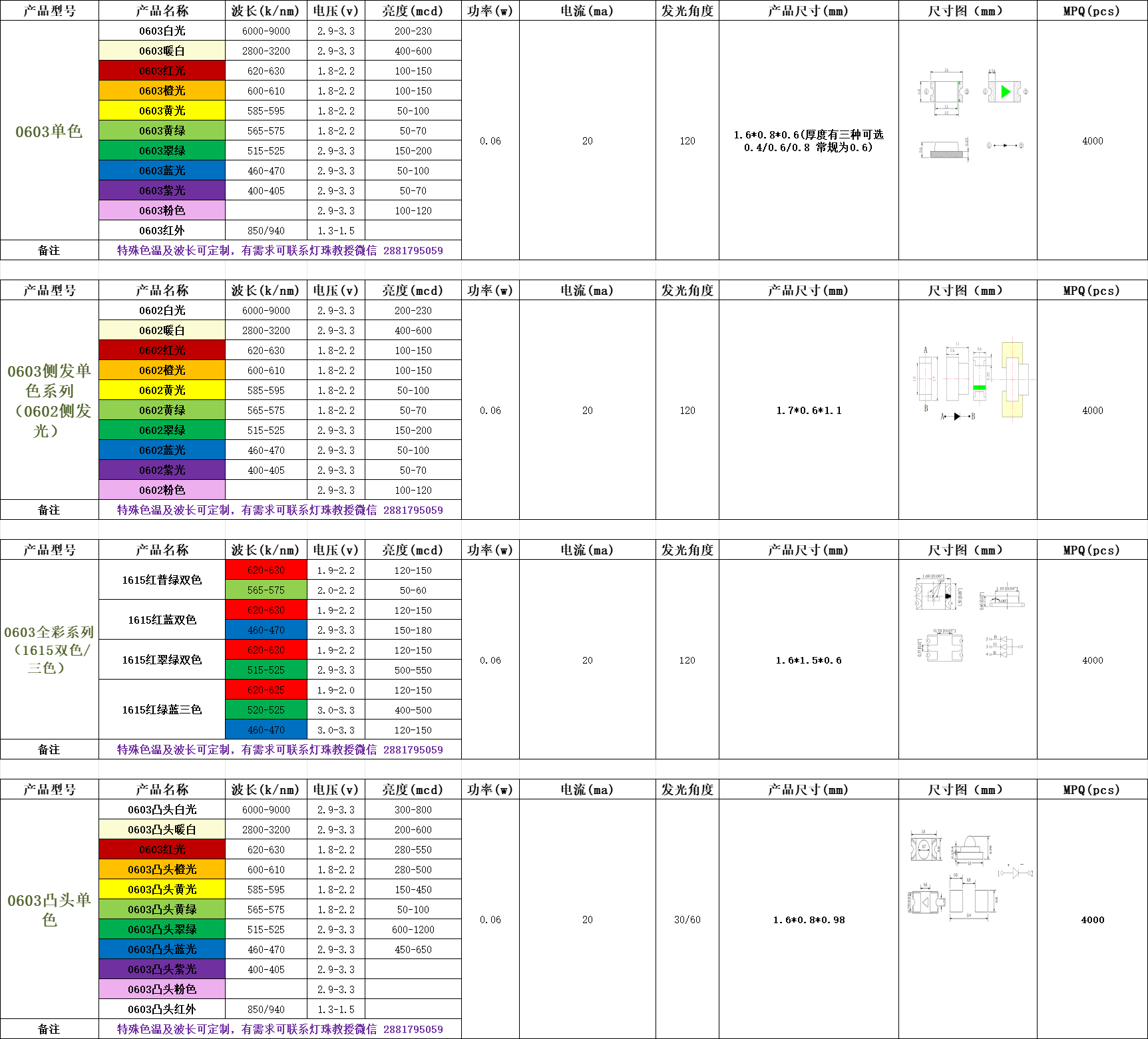 0603灯珠型号一览表