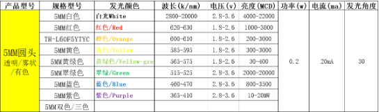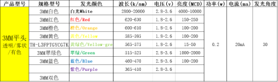 如果你需要更多的直插led灯珠一览表,规格书,电流,电压,亮度参数,请咨询led灯珠厂家台宏光电!