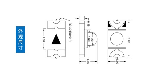 尺寸:3.2mm x 1.6mm x 2.0mm