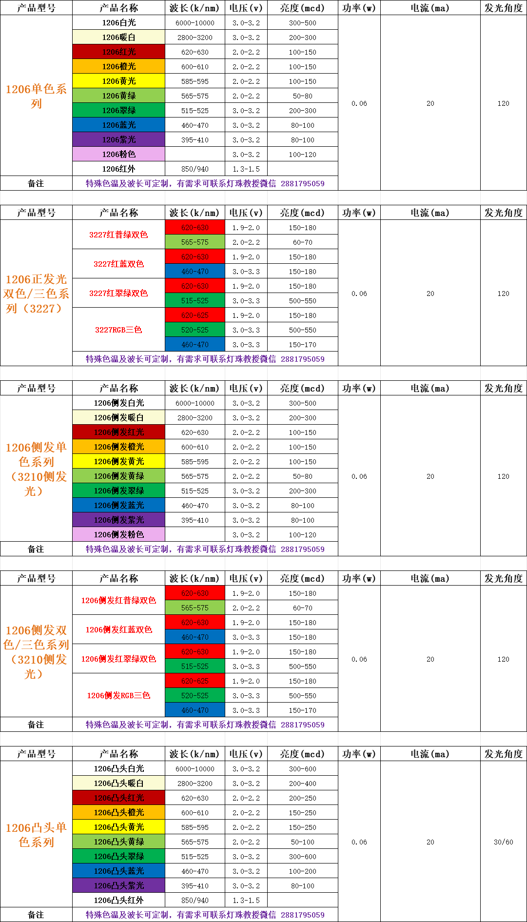 led灯珠型号对照表,它有着不同封装形式的,有着功率的,有着不同型号的,甚至有着不同颜色的。