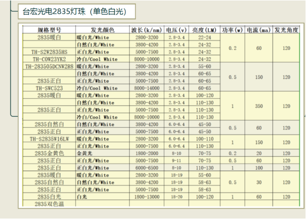 白光小功率LED:2.8-3.4V (包括正白、中性白、暖白和冷白光)