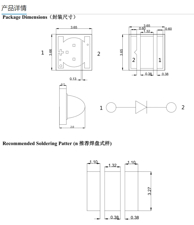 外形尺寸:3.45(长)*3.45(宽)*2.36(厚)MM