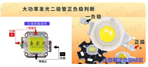大功率仿流明led灯珠,集成发光二极管正负极,怎么判断?