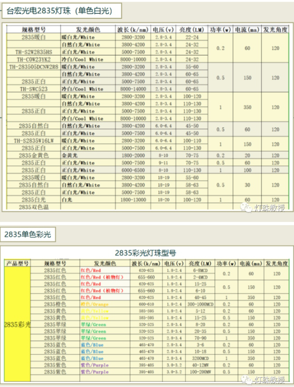 比如,我们拿台宏光电2835灯珠为例:2835灯珠