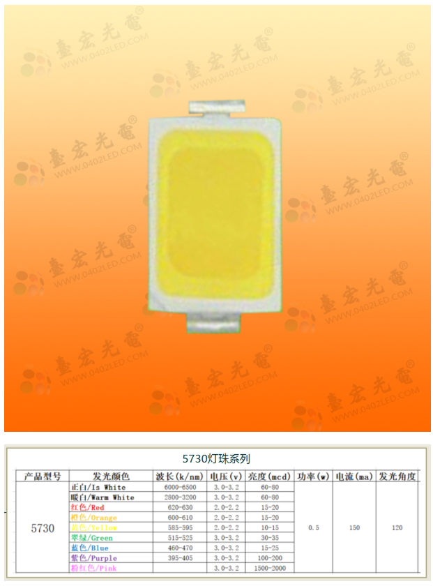 比如,2835贴片0.5W白光电压是2.8-3.4V,那5730贴片0.5W的电压也是2.8-3.4V。