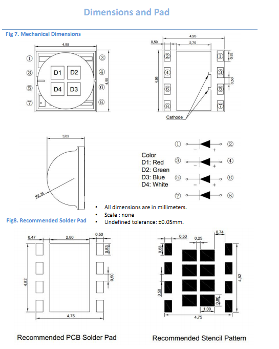 5、5050 RGBW 灯珠规格书,因为规格多,适合不同应用场景,灯珠厂家台宏有多种5050RGBW灯珠规格书。
