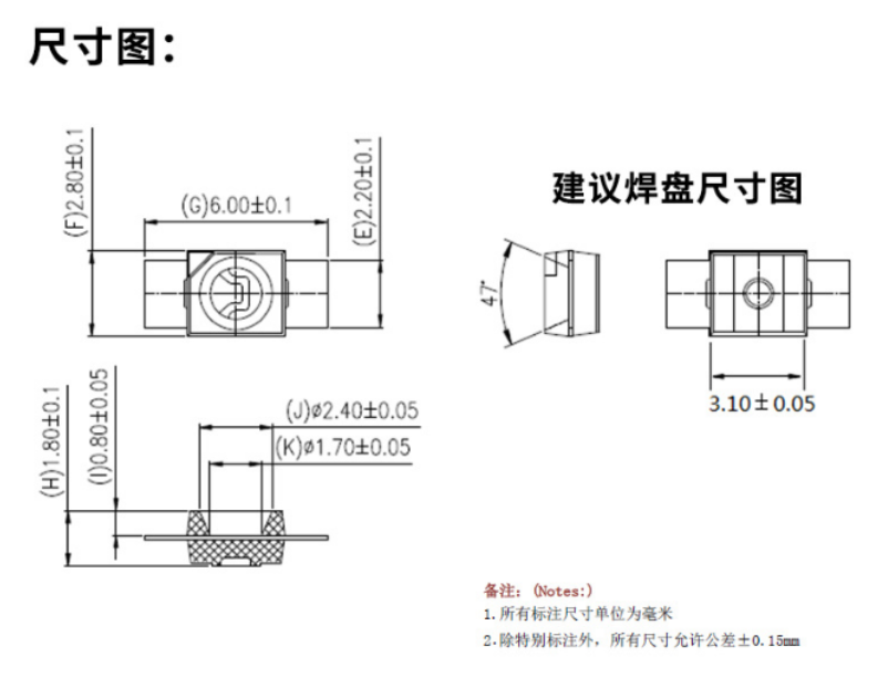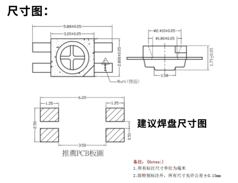一般常用的有6028单色红光,绿光,蓝光和白光,尺寸图如下: