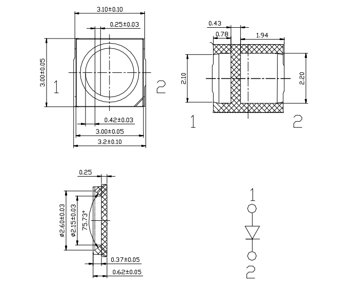 3030小角度远距离红外发射管尺寸图: 3030小角度远距离红外发射管优势: