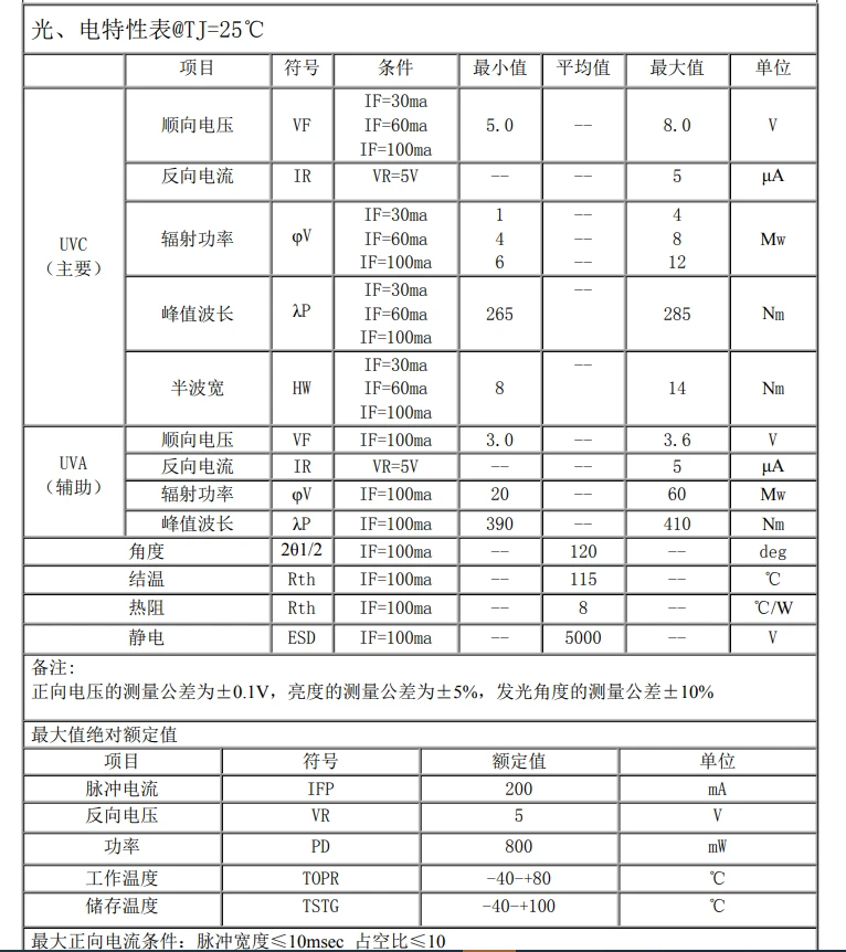 总的来说,3535陶瓷uv led灯珠,uv紫光led灯珠UVC+UVA 双波长深紫外 275+395nm 3-5mw 杀菌灯珠应用是很广的,具体你想用在什么产品上,可以一对一找灯珠教授微信 2881795059 聊聊。