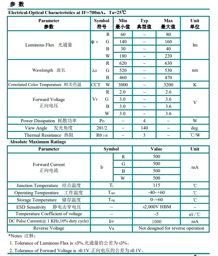 波长:R:620-630NM/G:520-530NM/B:455-460NM/W:6000-6500K