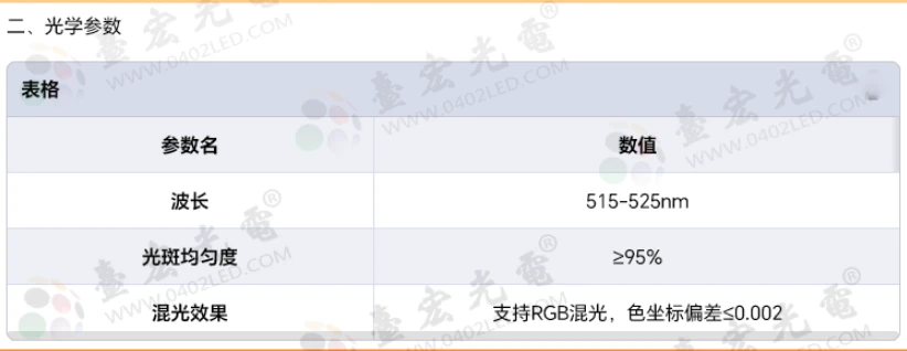 • 舞台灯光:提供高亮度、高显色性的绿光效果,适用于光束灯、摇头灯等。